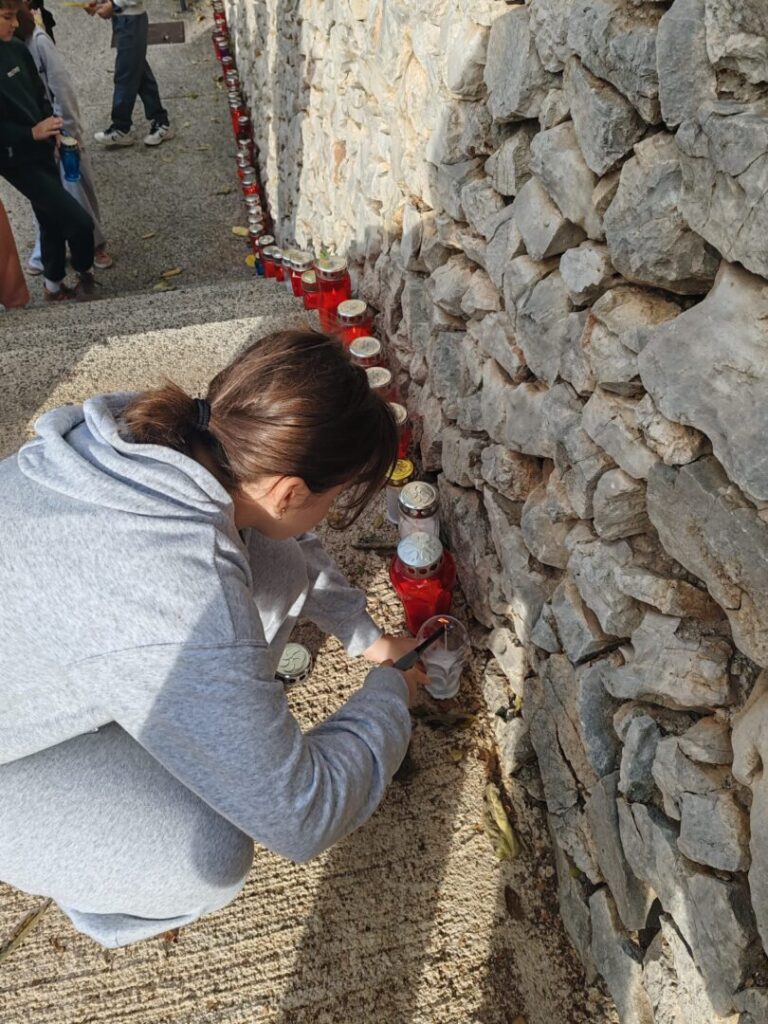 Ispred škole učenici su sa svojim učiteljima zapalili svijeće u znak poštovanja i zahvalnosti svim žrtvama Domovinskog rata. Time su obilježili 18. studenoga – Dan sjećanja na žrtve Domovinskog rata te Dan sjećanja na žrtvu Vukovara i Škabrnje.