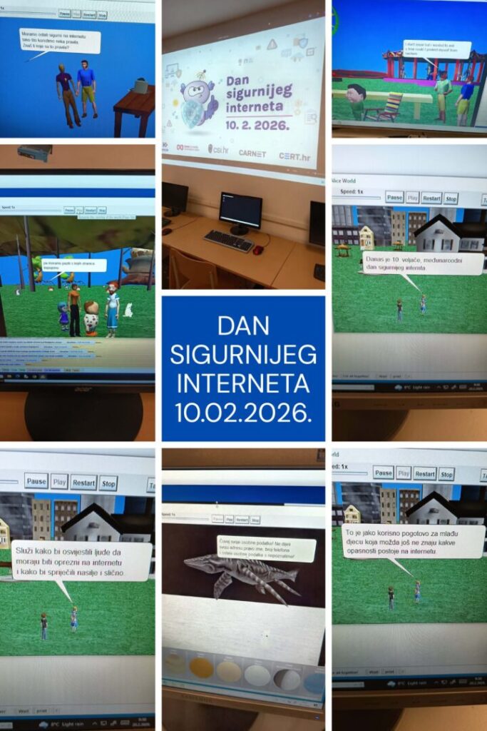 Ovogodišnji Dan sigurnijeg interneta obilježavao se 10. veljače 2026. Učenici 6.c razreda obilježili su Dan sigurnijeg interneta radeći u paru kratke scenarije u programu Alice na temu Zajedno za bolji internet. Iako je Dan sigurnijeg interneta obilježen, podsjećamo da je cijela veljača mjesec sigurnijeg interneta – razdoblje u kojem zajedničkim aktivnostima nastavljamo promicati odgovorno, sigurno i pozitivno online okruženje za djecu i mlade.