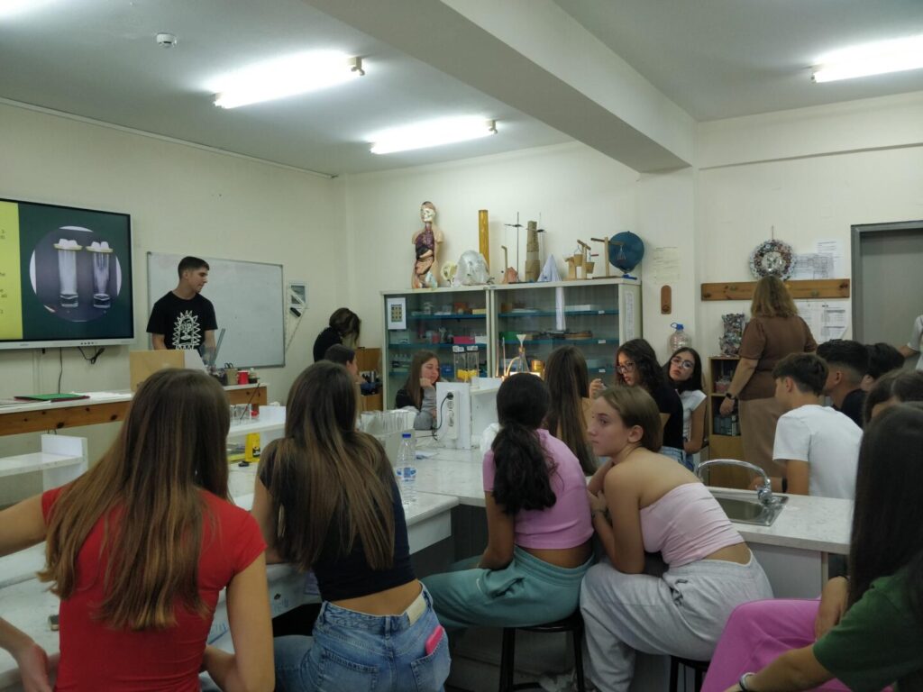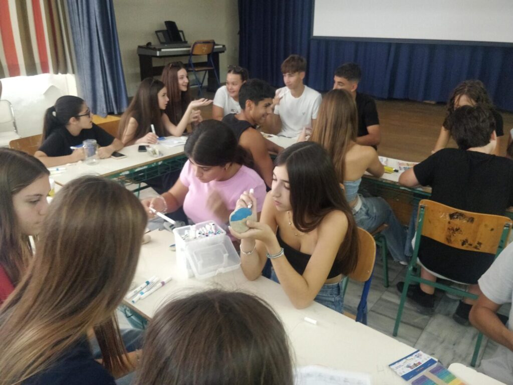 Sljedećeg su dana sudionici posjetili školu domaćina, gdje su imali priliku sudjelovati u nastavi te se upoznati s načinom rada svojih grčkih kolega. Održane su zanimljive radionice i eksperimenti vezani uz klimatske promjene, a u likovnoj radionici učenici su stvarali likovne radove koristeći materijale pronađene na plaži.