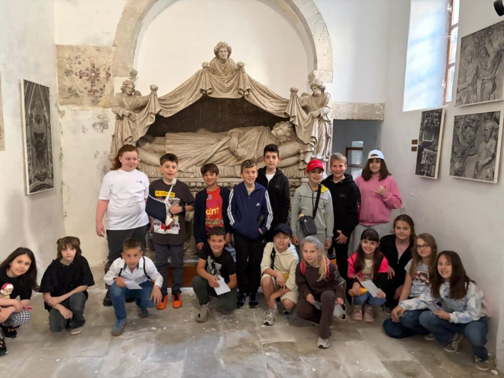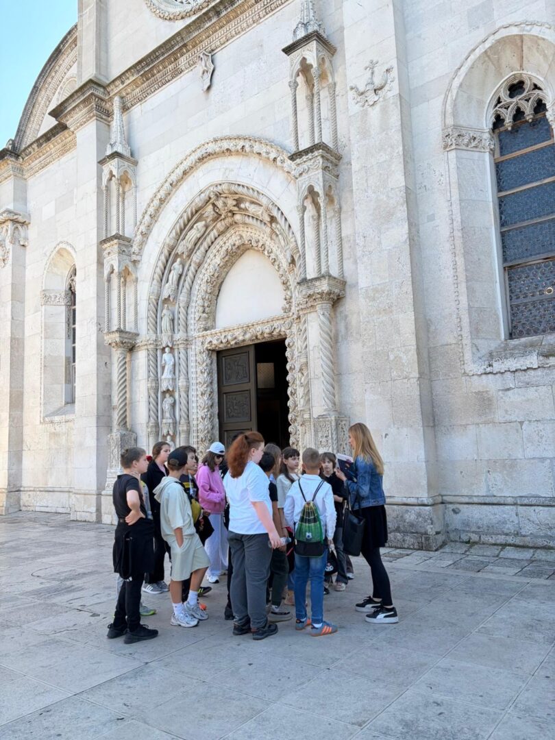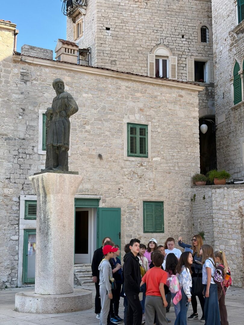 Kustosica Ana Pamuković danas je učenicima 4.b Osnovne škole Jurja Šiźgorica predstavila lik i djelo renesansnog genija – Jurja Dalmatinca. Učenici su pratili stope graditelja katedrale te uz pomoć sličica i zadataka otkrivali arhitektonske i skulpturalne detalje koji nose potpis tog slavnog graditelja i kipara. Svaki korak otkrivao je novu priču – o katedrali sv. Jakova, preko Četiri bunara i palače Foscolo, pa sve do priča o njegovim djelima izvan Šibenika.