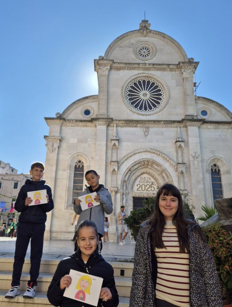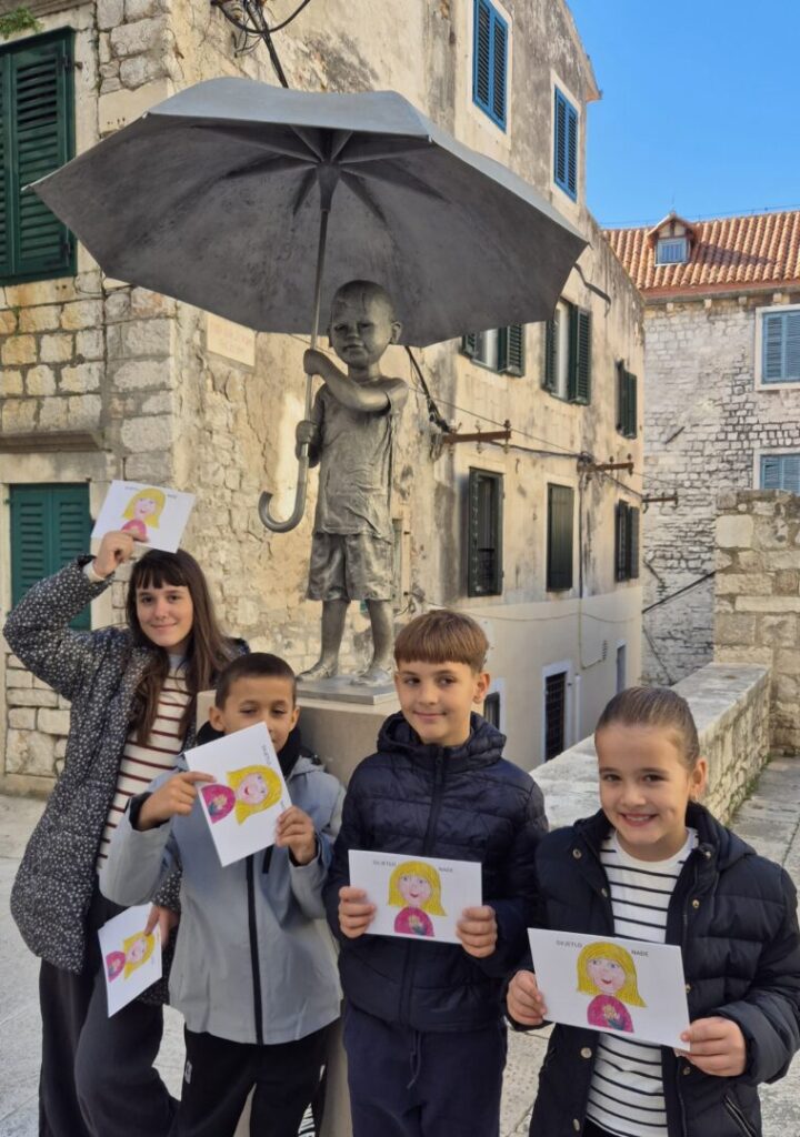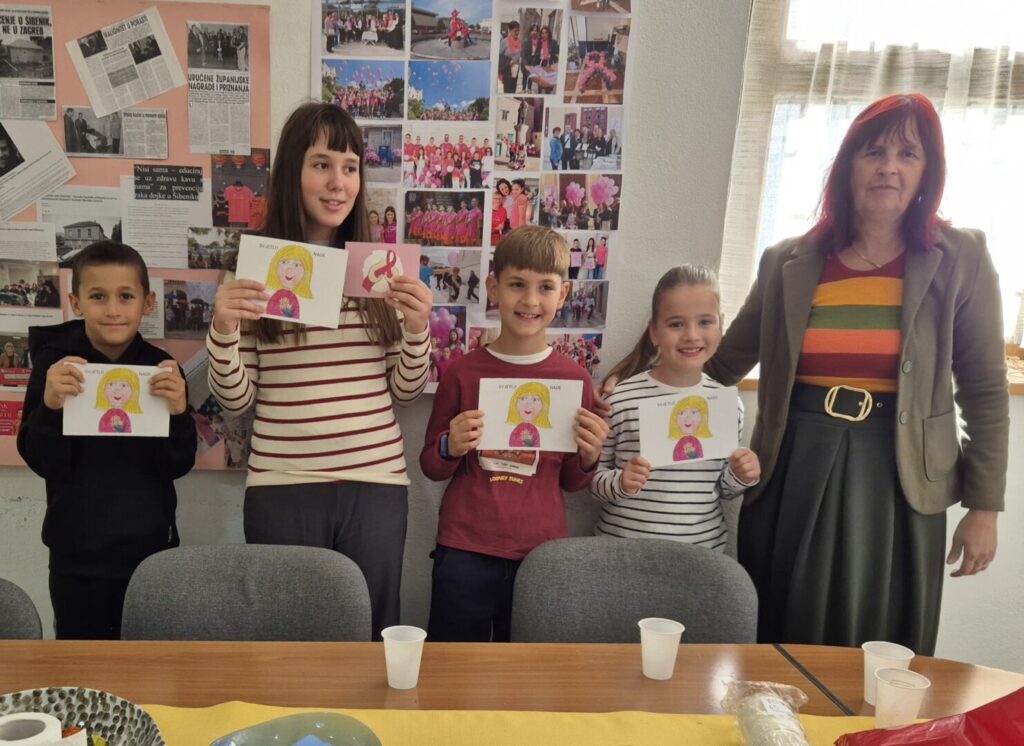 Učenici 2.a i 6.a razreda s učiteljicom Helenom Šarić sudjelovali su u humanitarnoj akciji Lige protiv raka Šibensko-kninske županije “Dan ružičaste vrpce “.