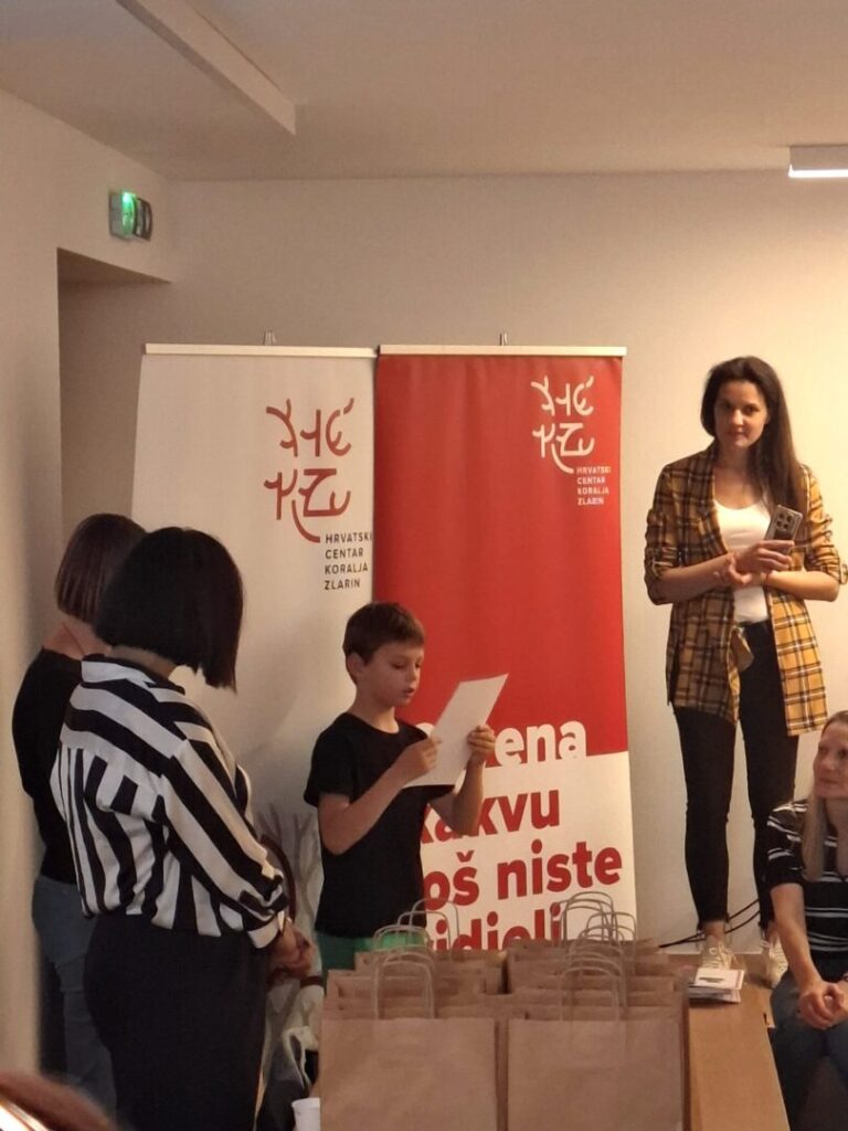 Ugodnom vožnjom brodom Lara stigli smo na Zlarin. Dočekali su nas organizatori. Posjetili smo Hrvatski centar koralja. Tu smo vidjeli i naučili mnogo o koraljima. Dojmljiva je bila knjiga dojmova. Tu smo vidjeli pohvale posjetitelja iz cijeloga svijeta.