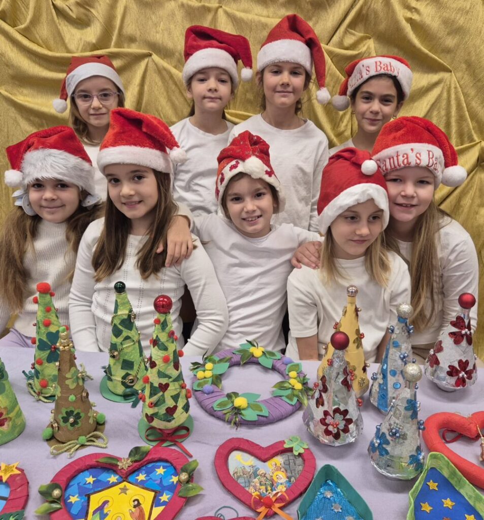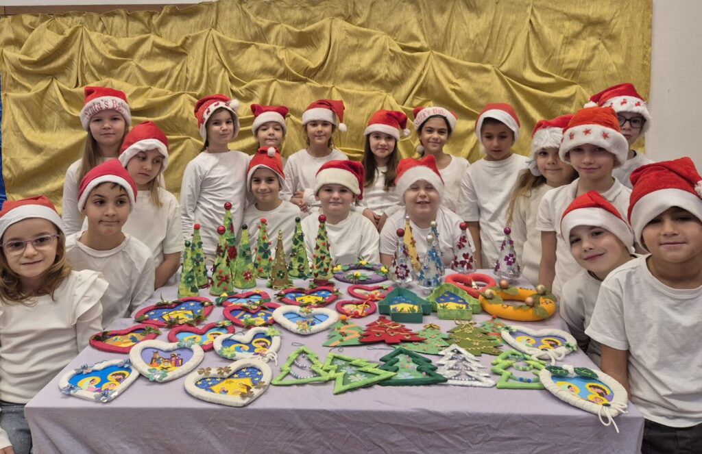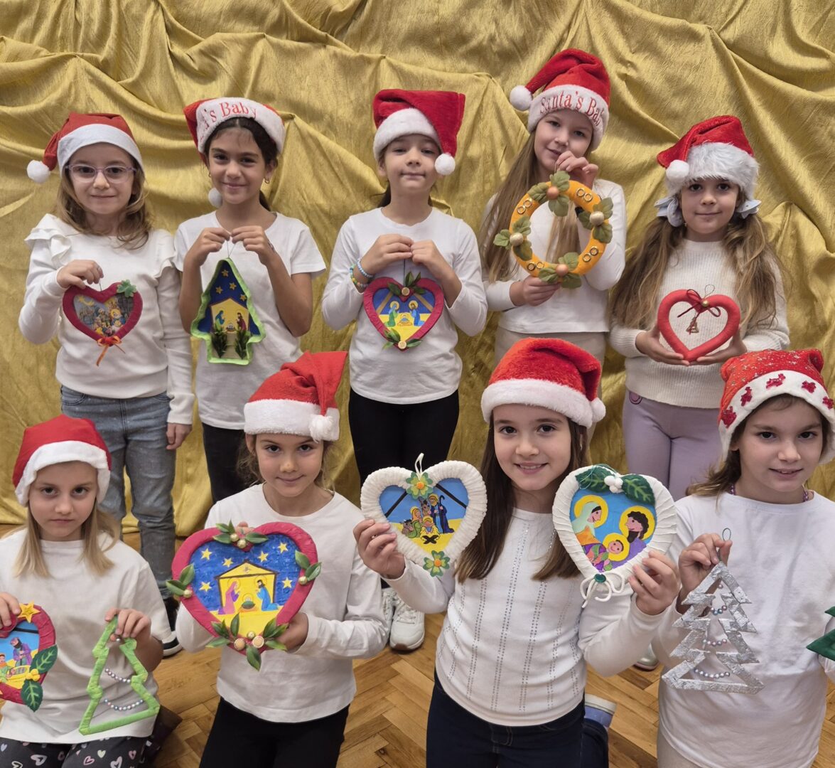 Učenici 2.a razreda pod mentorstvom učiteljice Helene Šarić izradili su jelke, vjenčiće i srca za humanitarnu akciju Gospe van Grada.