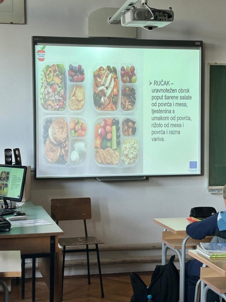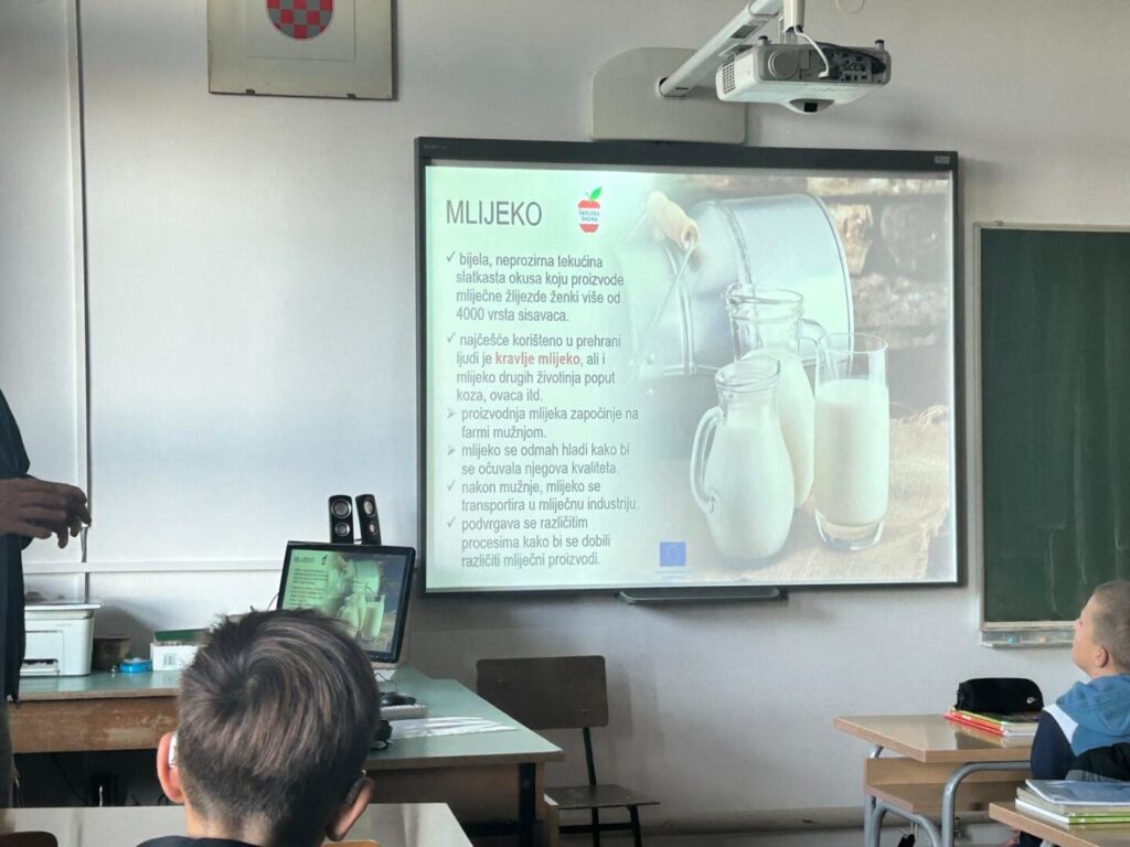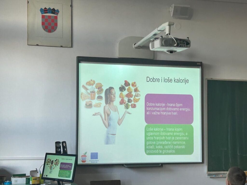 14.listopada u našoj Školi održano je 6.a razredu predavanje od strane izvođača DMD Naturalis d.o.o. o zdravoj prehrani. Posebno je istaknuto da je doručak najvažniji obrok u danu posebno za školarce kako bi poboljšali koncentraciju na nastavi do užine. Također su upoznati da je važno piti puno vode i mlijeka te jesti mliječne proizvode radi zdravlja kostiju i mišića. Važno je jesti i sezonsko voće i povrće, a naročito iz našeg područja. Moramo također i imati vrijeme kada što jedemo. Naučili smo da se voće jede u prvom dijelu dana kako bi se očistilo od svih loših tvari koje se nagomilaju tijekom sna. Večeru moramo jesti dva, tri sata prije spavanja.